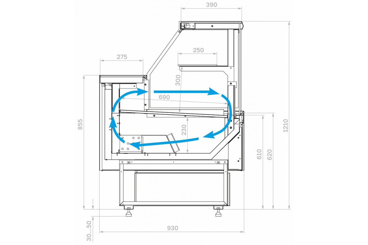 Модель без боковин предназначена для установки нескольких витрин в линию и не может использоваться как отдельностоящая. При заказе нескольких моделей для установки в линию достаточно приобрести две боковины: для первой и последней витрины.