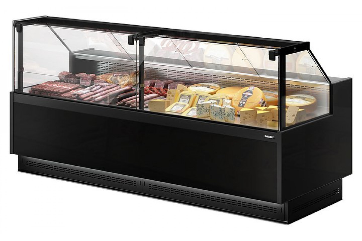 Холодильная витрина Dazzl Galaxy 080 Plug-in Закрытый угол 90 предназначена для демонстрации, охлаждения и кратковременного хранения мяса, птицы, рыбы, колбасных, молочных и гастрономических изделий на предприятиях общественного питания и торговли. Мод