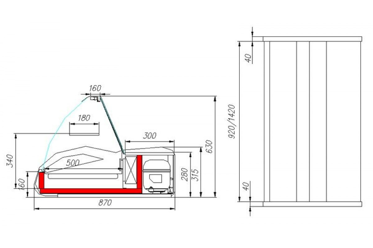 Витрина холодильная настольная Carboma A87 SM 1,5-1 (ВХС-1,5 Арго) (ВХС-1,5 Арго 0011-3020 (бок сер, декор красн))