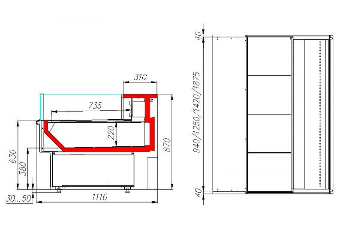 - Глубина выкладки 735 мм;