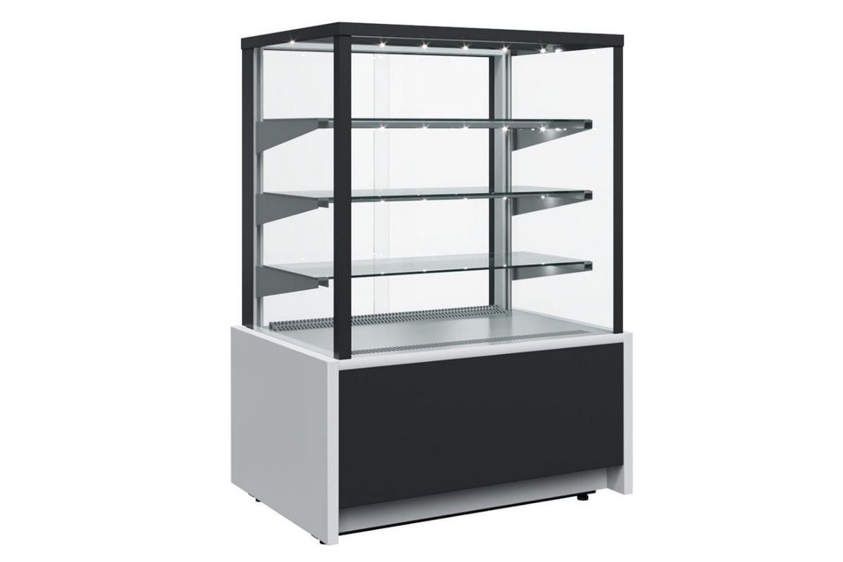 Витрина кондитерская Carboma KC70 VM 0,6-1 LIGHT 9006-9005 (ВХСв-0,6д Carboma Cube Техно) современное оформление торговых пространств. Кубический дизайн, подсветка каждой полки, многообразие цветовой палитры сделают интерьер привлекательным. Подходит для демонстрации пирожных, выпечки, пиццы, хлеба. Благодаря наличию в витрине защитных металлических стоек, закрывающих соединение стекол, рекомендуется устанавливать в зонах высокой проходимости покупателей и риском повреждения витрины сумками и чемоданами.