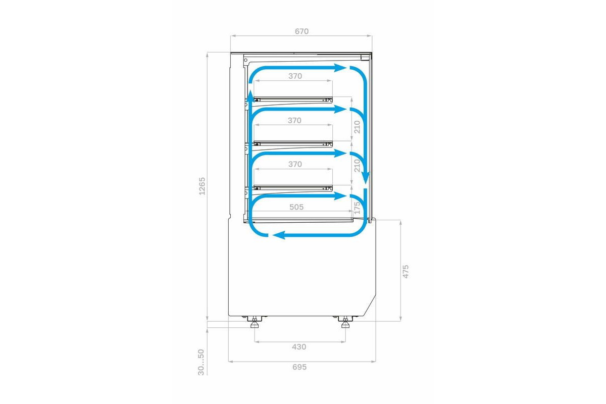 - Глубина выкладки 505 мм + 3 полки по 370 мм;