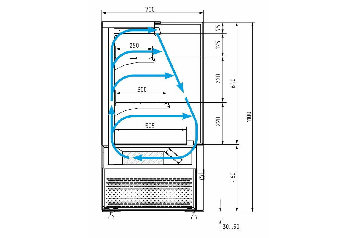 Витрина кондитерская Carboma KC71-110 VV 0,9-2 BUILT-IN (открытая 9005)