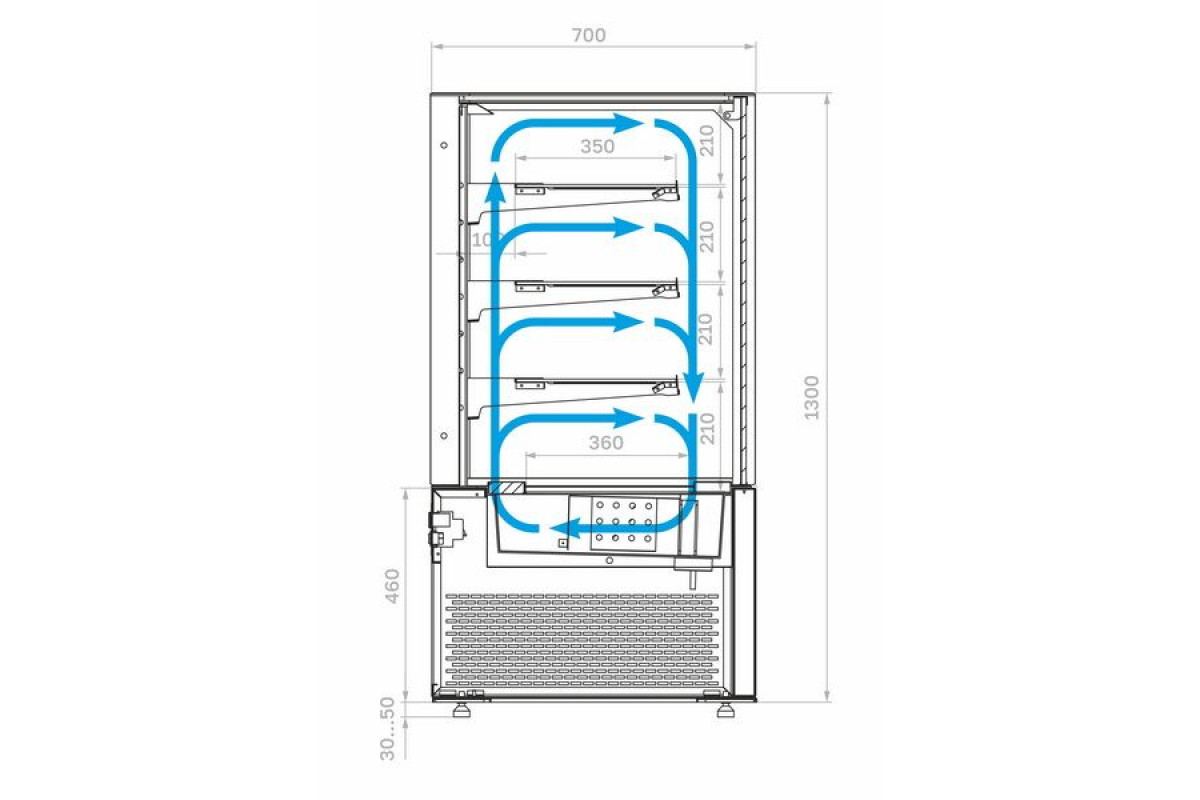Витрина кондитерская Carboma KC71-130 VV 0,9-2 (открытая, фронт оргстекло, 9005) представляет собой кондитерскую витрину открытого типа. Используется на предприятиях общественного питания и торговли для демонстрации, охлаждения и кратковременного хранения напитков, тортов, пирожных и других кондитерских изделий и гастрономических товаров. В конструкции предусмотрено 3 стеклянные полки, оснащенные ценникодержателем. Опорные ножки регулируются по высоте. Корпус произведен из пластика и стали. Для повышения теплоизоляционных свойств применяется слой из пенополиуретана.