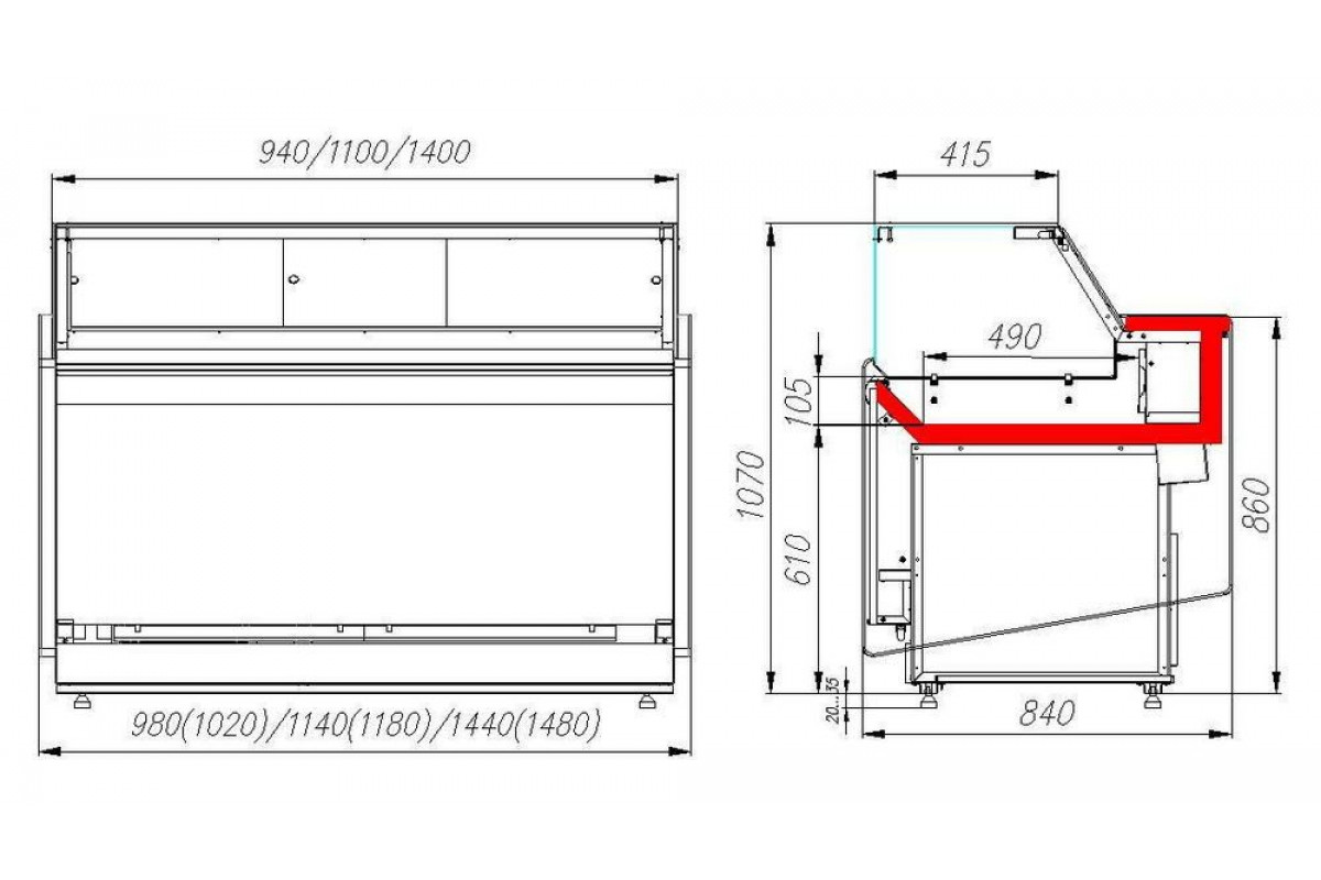 Витрина кондитерская Carboma KC82 SM-5 02 (модуль левый) (1008 темный дуб)
