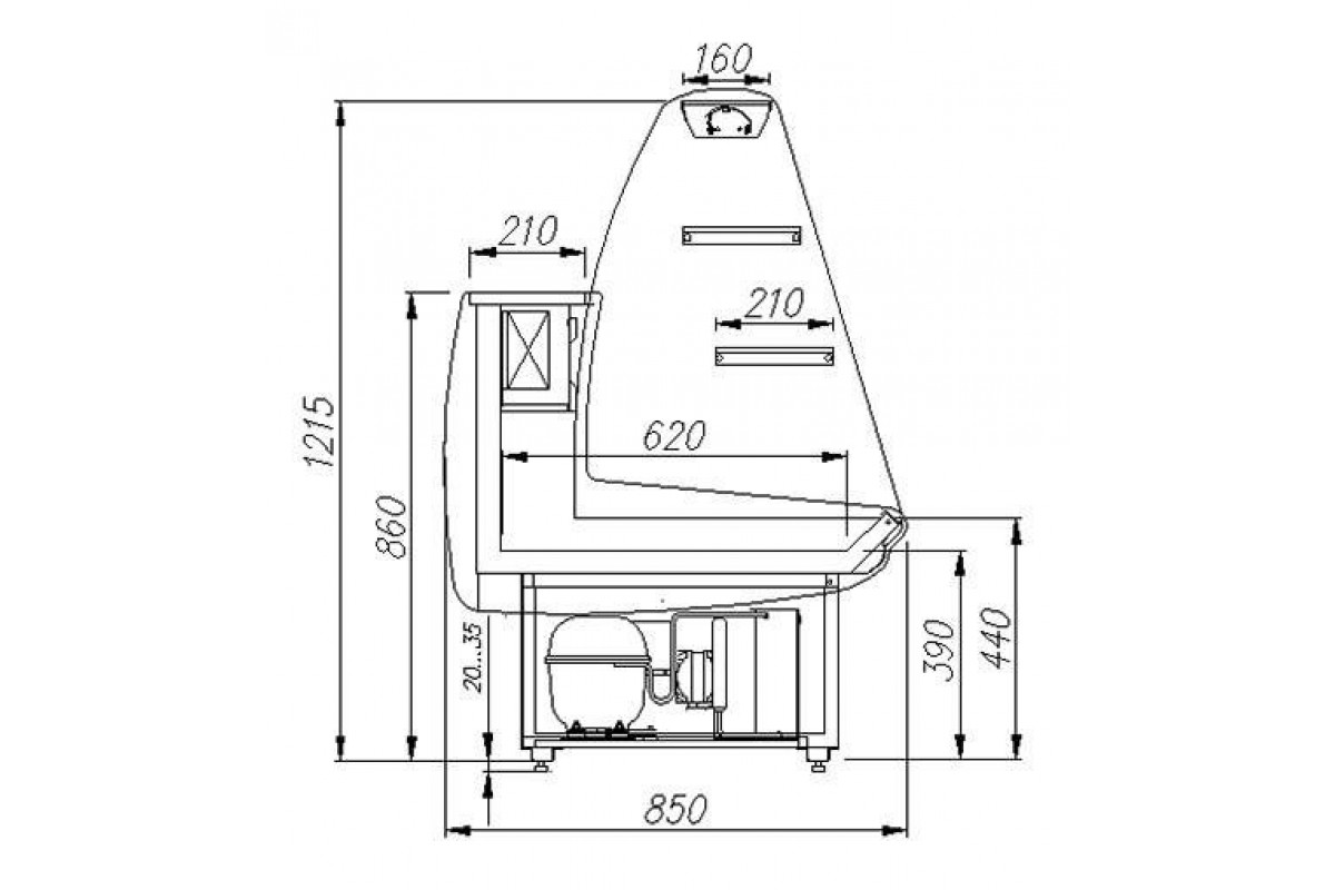 - охлаждаемая площадь выкладки – 0,87 м2, объем полезный – 0,13 м3;