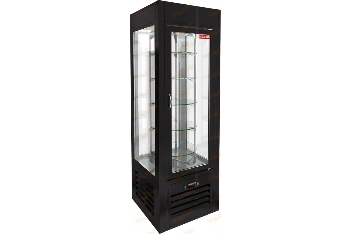 Кондитерская витрина HICOLD VRC 350 R Sh Black используется на предприятиях общественного питания и торговли для демонстрации, охлаждения и кратковременного хранения кондитерских изделий и десертов. Модель оснащена 5 вращающимися полками и регулируемым