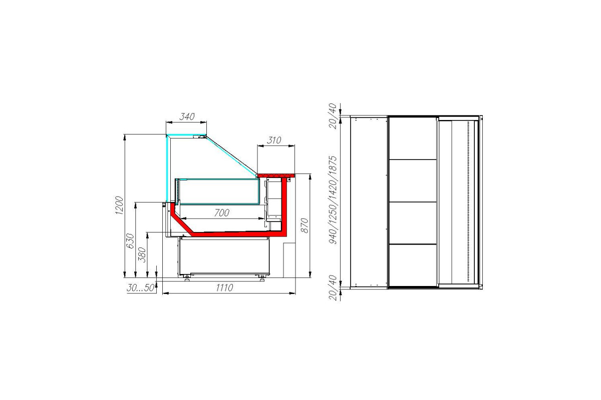 - глубина выкладки — 700 мм;