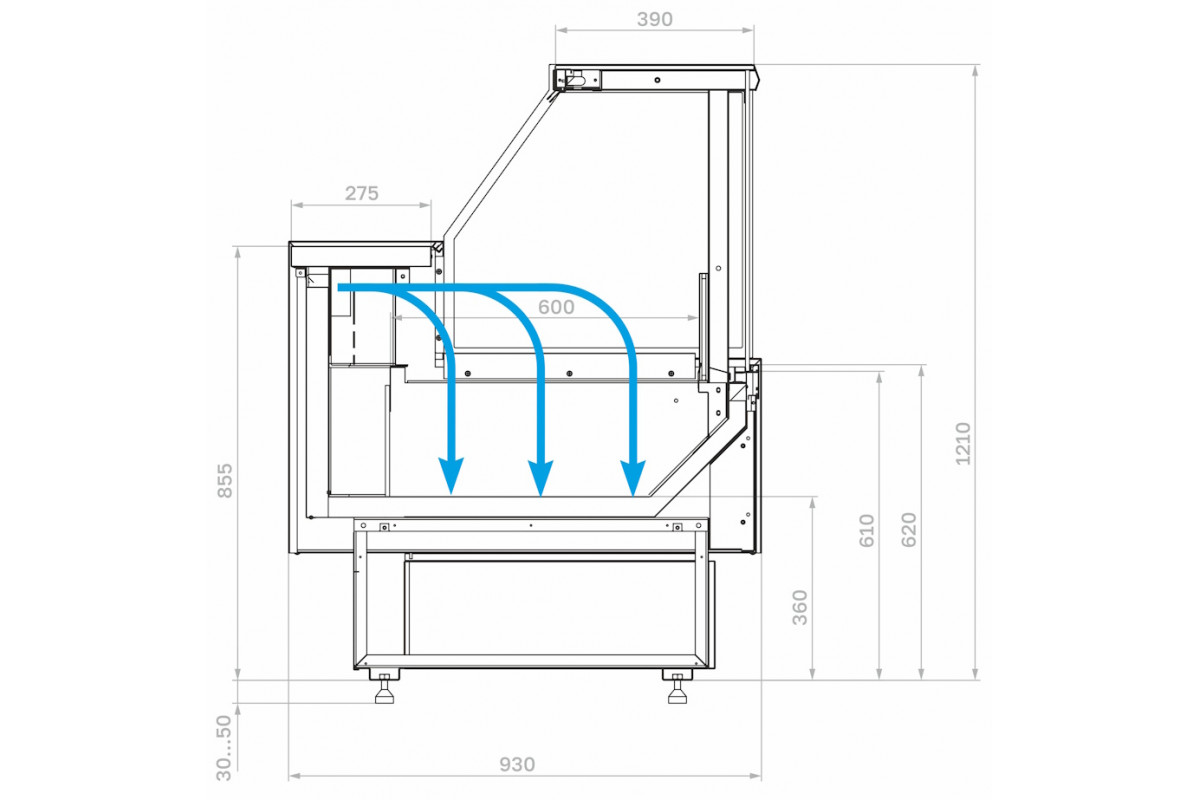 Модель без боковин предназначена для установки нескольких витрин в линию и не может использоваться как отдельностоящая. При заказе нескольких моделей для установки в линию достаточно приобрести две боковины: для первой и последней витрины.