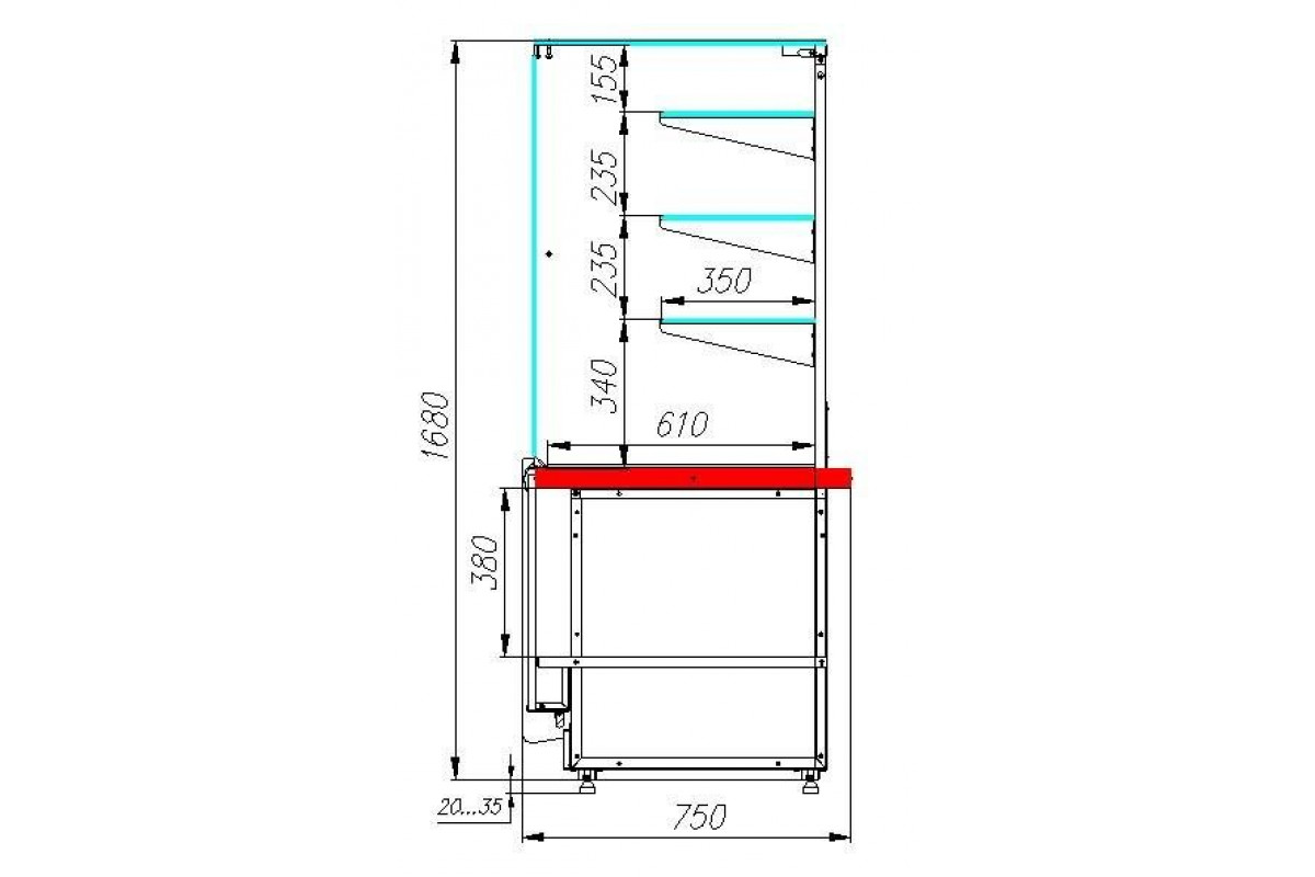 - три стеклянных полки на металлических кронштейнах, глубина полок – 350 мм;