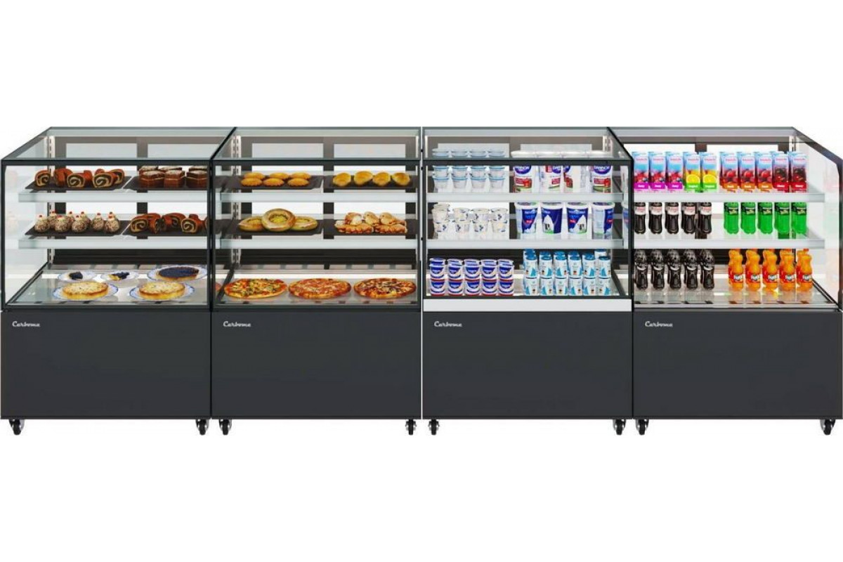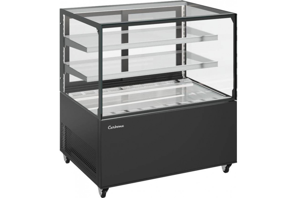 Витрина нейтральная напольная Carboma KC71-110 N 1,2-1 (9005) витрины COSMO идеально подходят для любой конфигурации помещений кондитерской, пекарни, кафе. Дают возможность легко менять и расширять концепцию, варьируя пространством и объёмом экспозиции продуктов. Ровные грани стеклопакетов и отсутствие соединительных планок во внешнем контуре остекления придают витринам легкость и эффект бесконечности.
