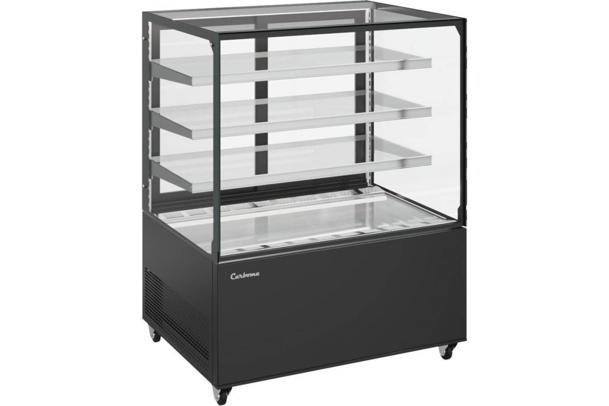Витрина нейтральная напольная Carboma KC71-130 N 0,6-1 (9005) витрины COSMO идеально подходят для любой конфигурации помещений кондитерской, пекарни, кафе. Дают возможность легко менять и расширять концепцию, варьируя пространством и объёмом экспозиции продуктов. Ровные грани стеклопакетов и отсутствие соединительных планок во внешнем контуре остекления придают витринам легкость и эффект бесконечности.