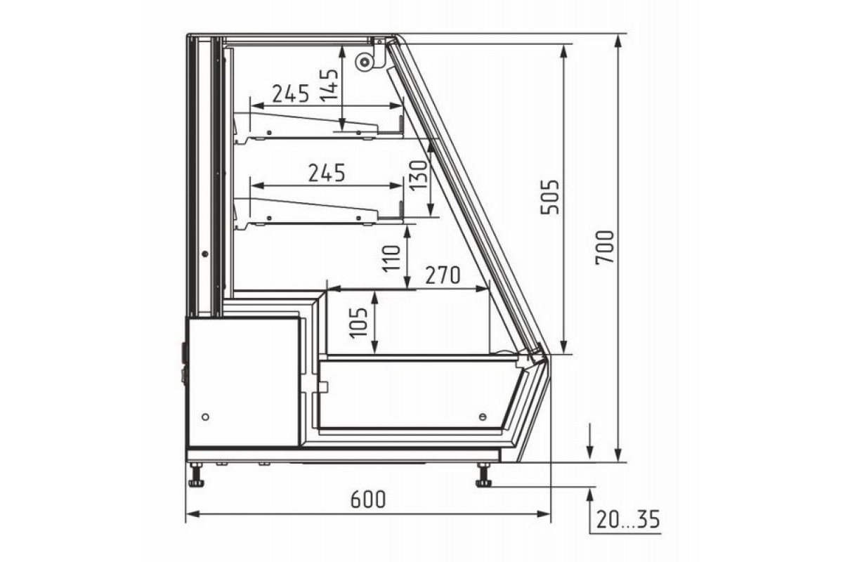 - Глубина выкладки нижней зоны 270 мм;