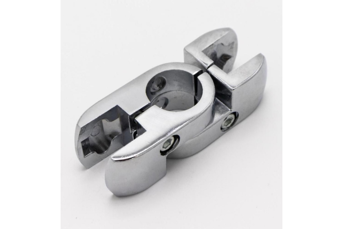 Соединитель состоит из 2х изолированных половинок и имеет возможность крепления панелей и стекла под произвольным углом. Характеристика: Зажимает до 20мм Диаметр трубы 25мм Покрытие хромированное