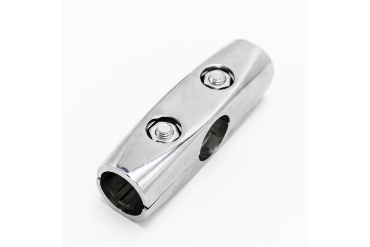 Зажим для труб в 4-х направлениях d=25мм, хром, является одним из самых используемых крепежей системы джокер для хромированных труб. Соединяет 3 трубы: одна из труб по центру проходит насквозь и 2 другие по бокам. Участвует в создании мобильных и стаци