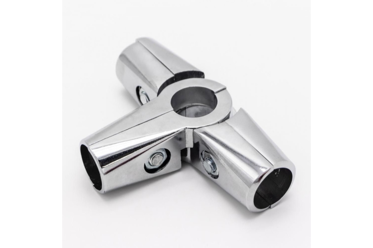 Зажим поворотный малый для труб в 4-х направлениях d=25мм, хром, соединяет 3 трубы, одна из труб по ..