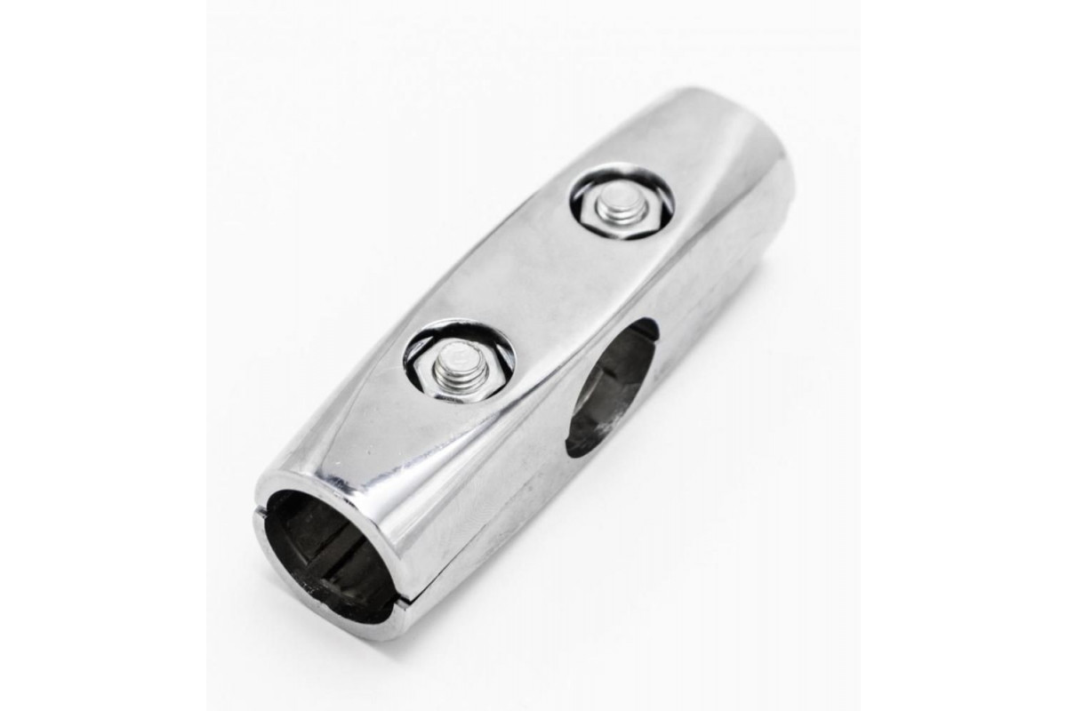 Зажим для труб в 4-х направлениях d=25мм, хром, является одним из самых используемых крепежей системы джокер для хромированных труб. Соединяет 3 трубы: одна из труб по центру проходит насквозь и 2 другие по бокам. Участвует в создании мобильных и стаци